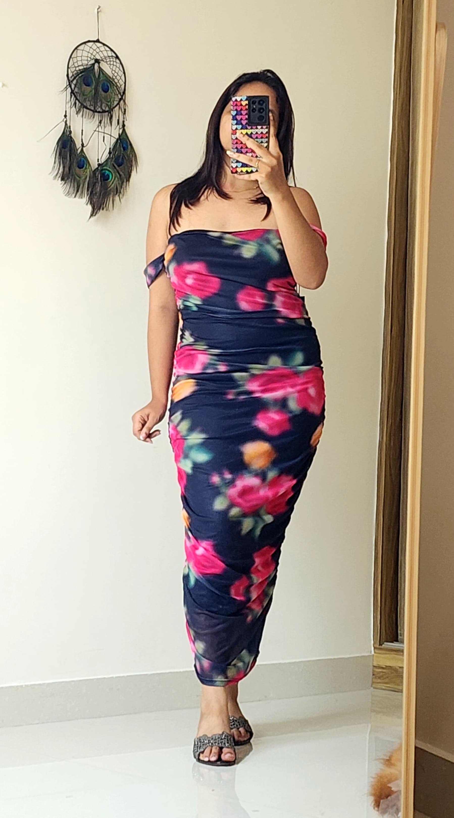 This dress offers a stylish and feminine look perfect for both casual outings and special occasions. The frilled accents add a touch of sophistication, making it a versatile addition to your wardrobe.
